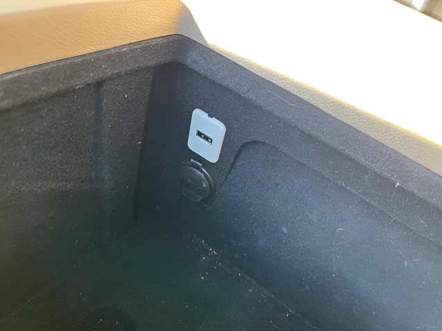 - Console, floor with storage compartment 2 auxiliary power outlets and dual cup holders