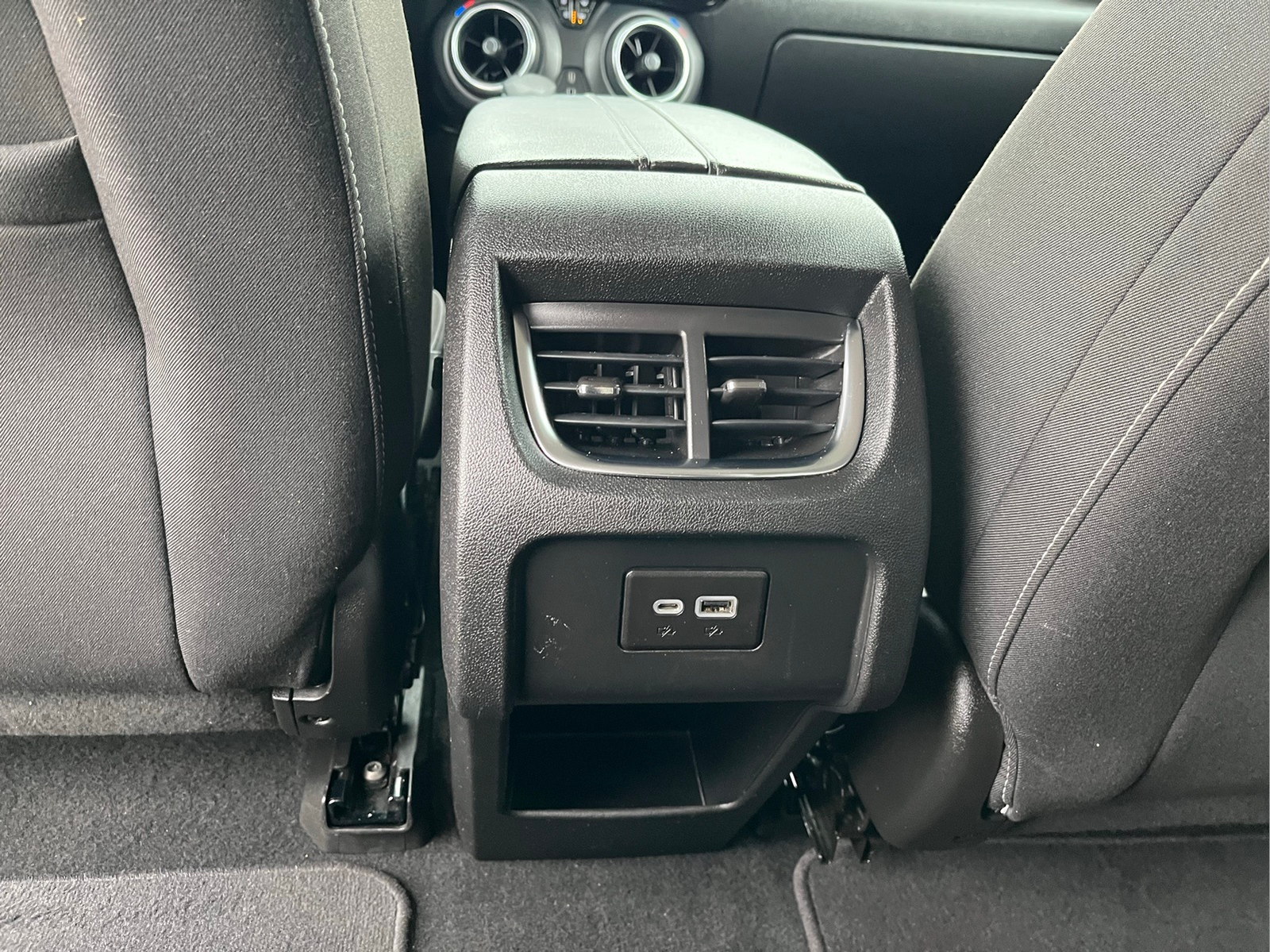 - USB charging-only ports 2, one type-A and one type-C, located on rear of center console